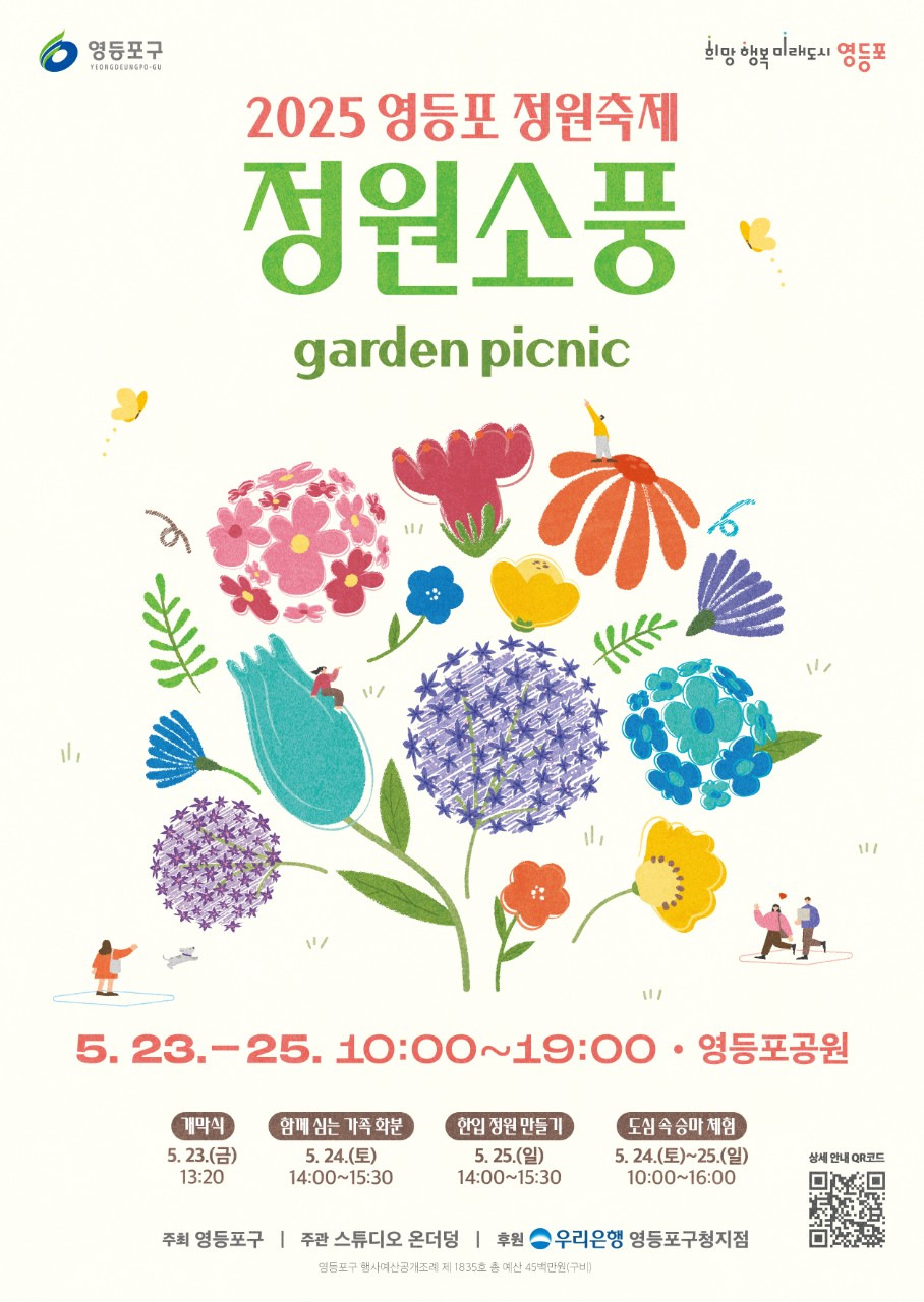 최호권 영등포구청장은 “이번 정원축제는 도심 속 정원에서 소풍을 즐기듯 여유와 힐링을 만끽할 수 있는 특별한 기회”라며 “정원과 사람, 이야기가 어우러지는 정원도시 영등포에서 소중한 추억을 만들어 가시기 바란다”라고 전했다.
