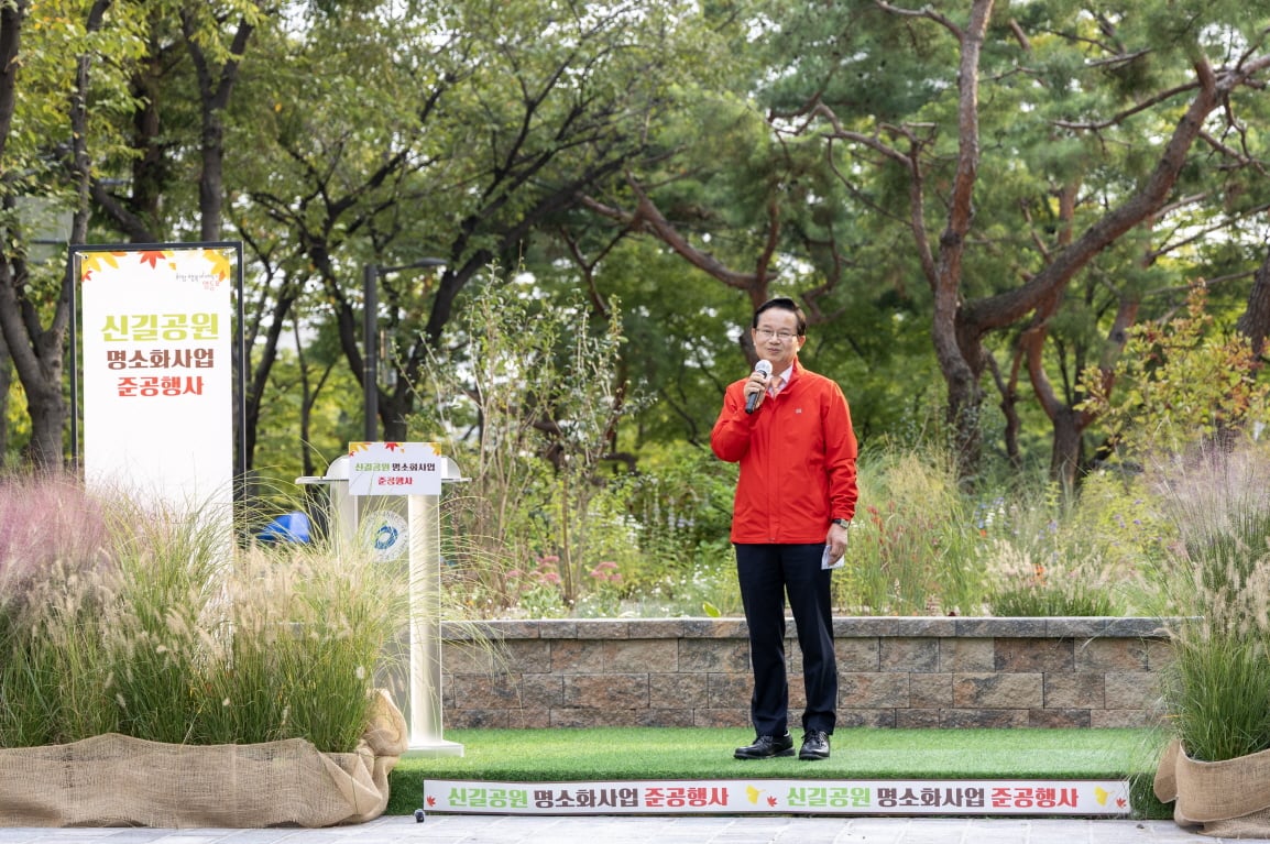 ‘신길근린공원’ 명소화 사업 1차 구간은 약 5천㎡ 규모로, 6억 6,200만 원의 예산이 투입됐다. 이번 사업에는 ▲노후시설 정비 ▲스마트 쉼터 설치 ▲건강 맨발길 조성 ▲사계절 꽃을 감상할 수 있는 테마정원 ▲다목적 구장 재정비 등 주민들이 휴식과 운동을 함께 즐길 수 있는 공간으로 새롭게 단장했다. 1차 구간은 지난 9월 준공됐으며, 오는 2026년에는 철쭉동산 조성과 추가 시설 정비를 포함한 2차 공사에 착수할 예정이다. 구는 해당 공원이 신길뉴타운 주민들의 휴식처이자 힐링 명소로 거듭날 것으로 기대하고 있다.