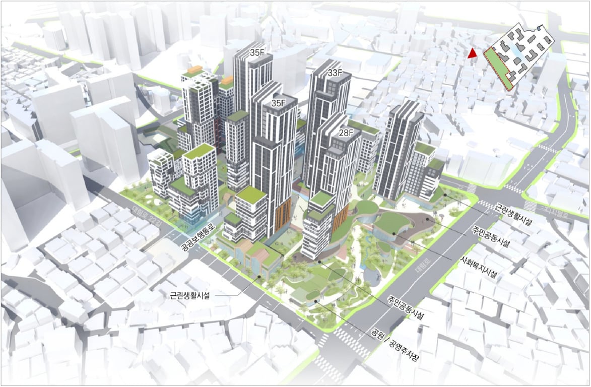 대림1구역은 35층 규모의 12개 동, 총 1,026세대로 조성될 계획이며, 제3종 일반주거지역으로 용적률은 283.2%가 적용된다. 사업지 인근에서는 지구단위계획 재정비, 주거환경 개선사업, 역세권 장기전세주택 건립 등 다양한 정비사업이 함께 진행되고 있어 지역 생활 인프라도 크게 향상될 것으로 보인다.