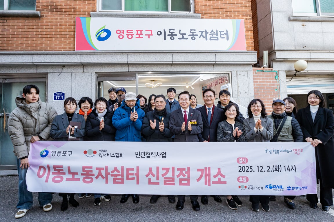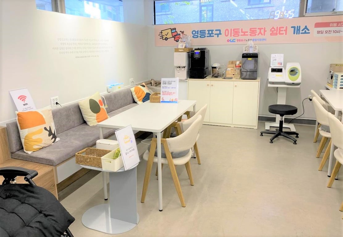 구는 휴식, 대기 공간이 부족한 이동노동자의 휴식권 보장을 위해 영등포구 노동자종합지원센터 1층(당산동)에 쉼터 1호점을 조성한 데 이어, 신길동(신길로52길 17-1, 1층)에 2호점을 추가 설치했다. 2호점은 12월 한 달간 시범 운영을 거쳐 내년 1월부터 본격 운영될 예정이다.