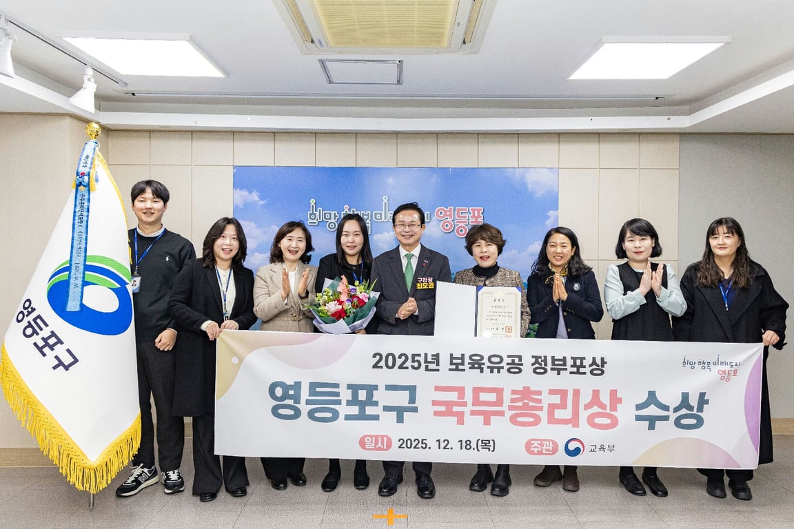 영등포구(구청장 최호권)가 교육부 주관 ‘2025년 보육유공 정부포상’ 에서 지자체 부문 국무총리 표창을 수상했다고 밝혔다. 보육 분야에서 정부포상을 받은 것은 이번이 처음으로, 구가 추진해온 보육정책 전반이 국가 차원에서 공식 인정받았다는 점에서 의미가 있다.