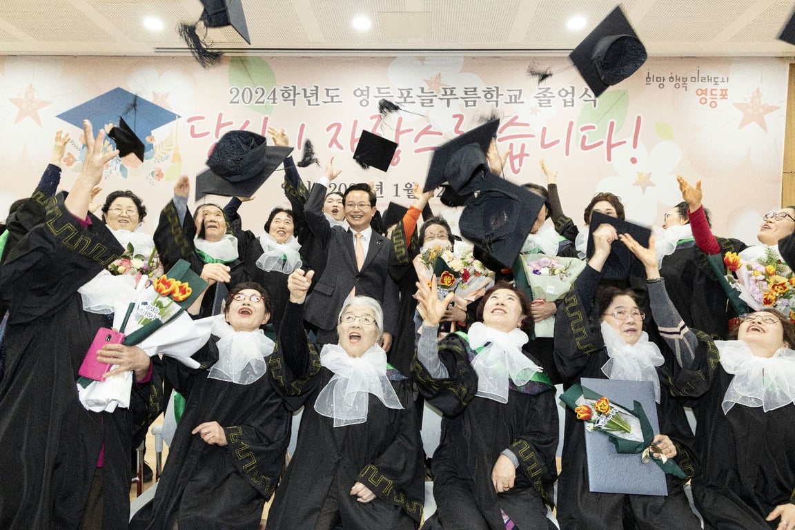학사모를 쓴 만학도 45명…‘영등포 늘푸름학교’ 졸업식 개최