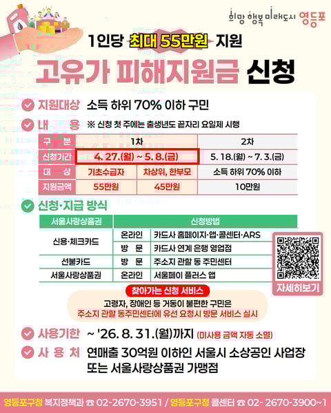 영등포구, ‘고유가 피해지원금’ 최대 55만 원 지원